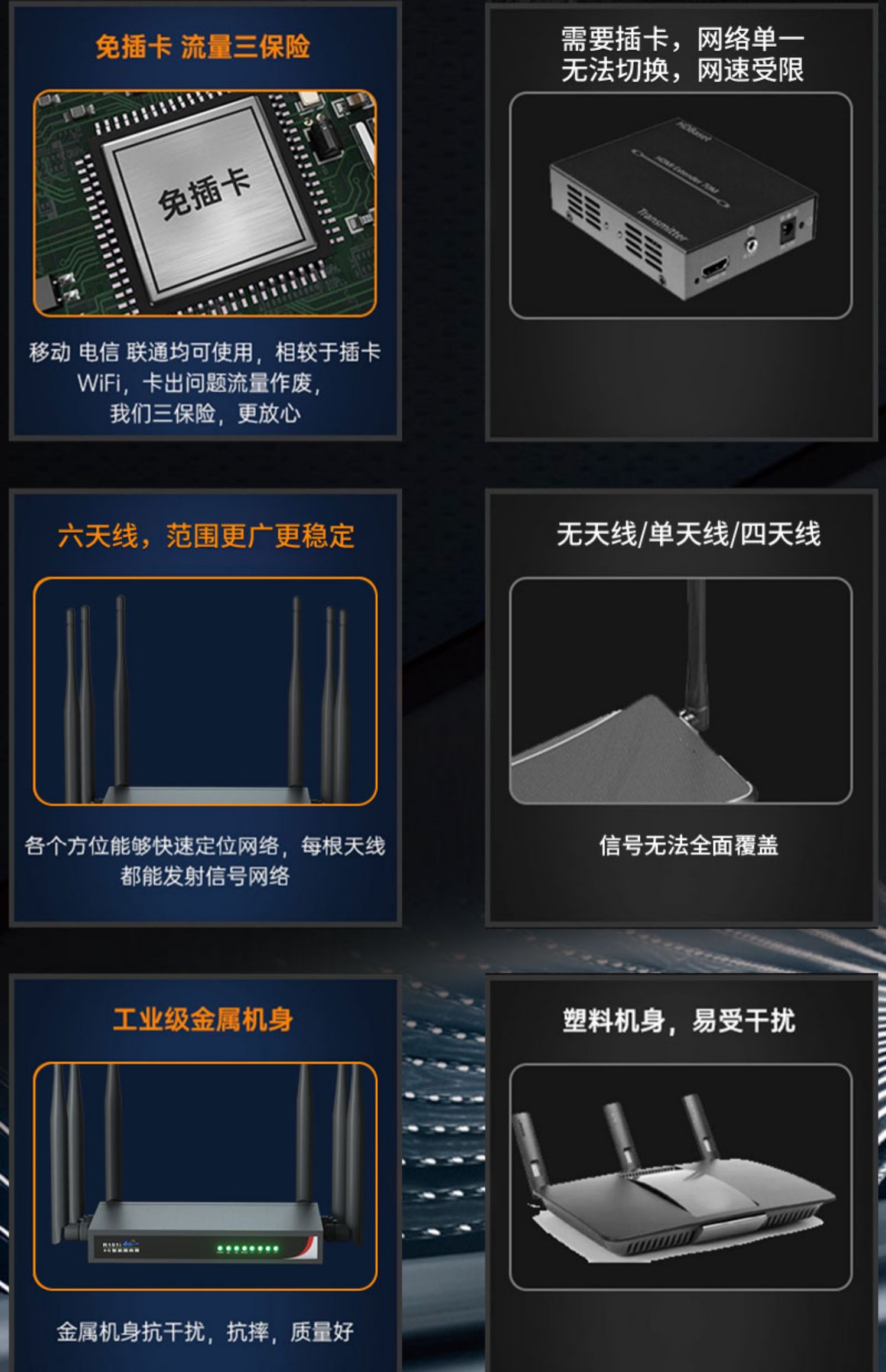 成色:全新颜色分类:工业级电竞4g无线路由器 工业级电竞无线路由器+增益天线 Pro四核穿墙王800MBPS Pro+八核电竞1200MBPS运营商:中国电信 中国移动 中国联通